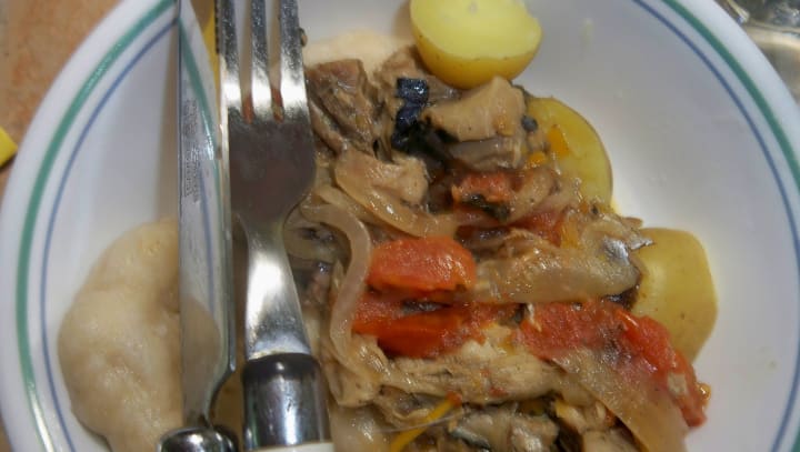Grigot is a dish that is made with pork meat cubes simmered in a sweet, spicy, and tangy marinade. The marinade consists of chili peppers, onions, and orange, lime, or lemon juice. After the pork is tender it is fried in a skillet.