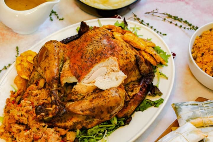 Pavochon is the star dish on every Puerto Rican table on Thanksgiving. The name of the dish is a combination of two words – pavo meaning turkey and lechon meaning roast suckling pig. Basically, the dish is a turkey that is seasoned and cooked like roasted pork. The turkey is stuffed with monfongo, a combination of pork rinds, garlic, plantains, and peppers.