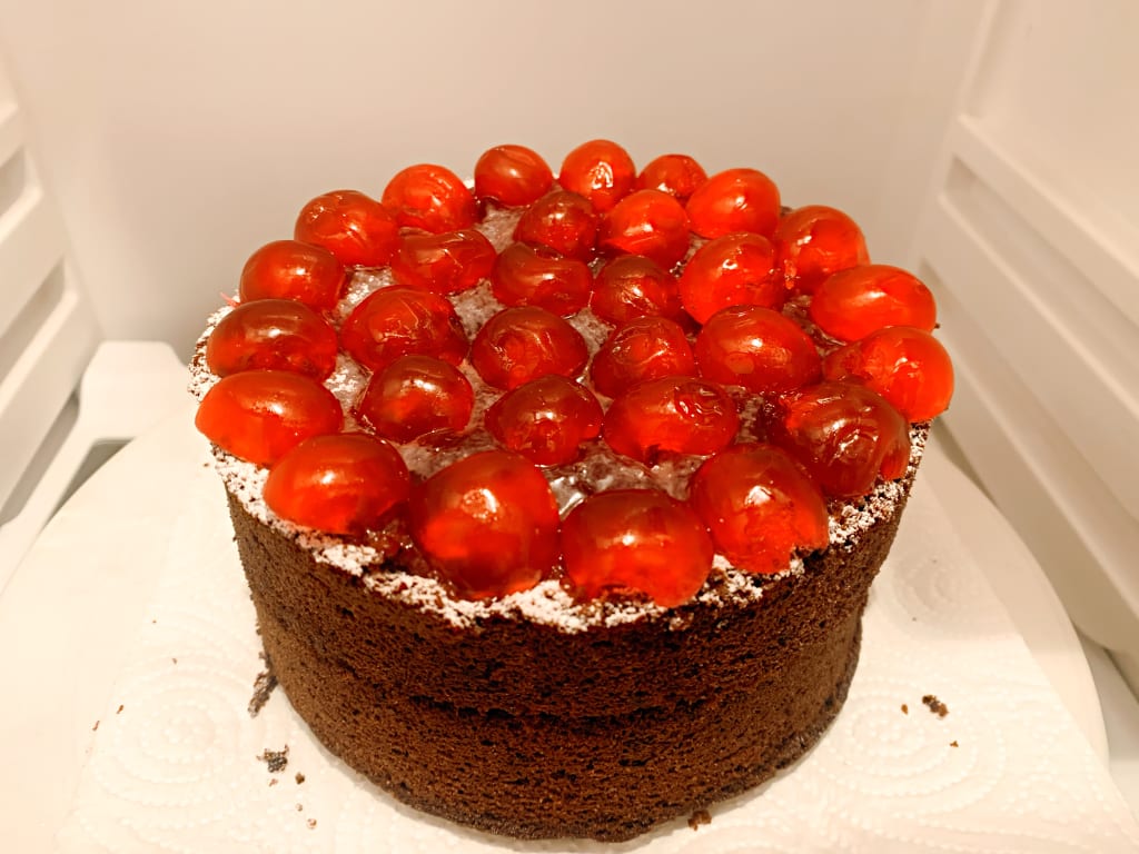 - On the top, put on either glacé or maraschino cherry halves