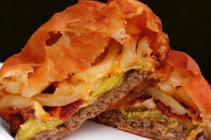 The Utah State Fair was held from September 8 – September 18, 2022, in Salt Lake City, Utah. Here people prefer Rocky Mountain Concessions and the incredible French-Fry Stuffed Burger. A cooked hamburger patty with shredded cheddar-jack cheese, pickles, and pre-cooked fries are wrapped into a made-from-scratch dough. The edges are crimped, so the stuffing stays in place and then is deep fried to a golden brown. It is served with ketchup, mustard, and mayo for dipping.