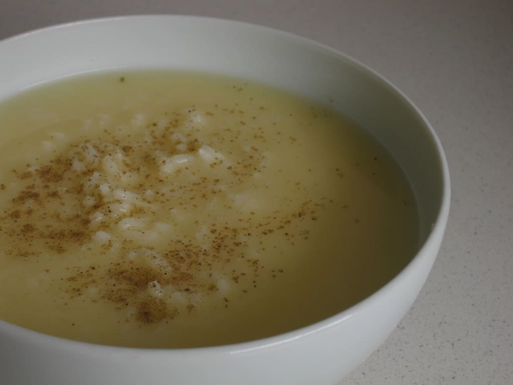 Soupa avgolemono is a Greek soup made of egg (avgo) and lemon (lemoni). With only a few other ingredients, such as rice and salt and pepper, it is a humble dish that has played a role in each act of my life. My starring association with the soup is my family's tradition to eat it when we get back from a trip abroad. Usually, we would step back into our house after a week or two away during the early hours of the morning - so as to savour every moment of the country while we could. My yaya (grandmother) would have spent the final day of our trip back to England cooking the soup, to then leave it in our fridge - waiting for our return. Despite being exhausted from the travel, my mother would bring the soup to heat and ladle it carefully into the bowl in our hands. Quietly, we would eat together with gratitude before heading to bed.