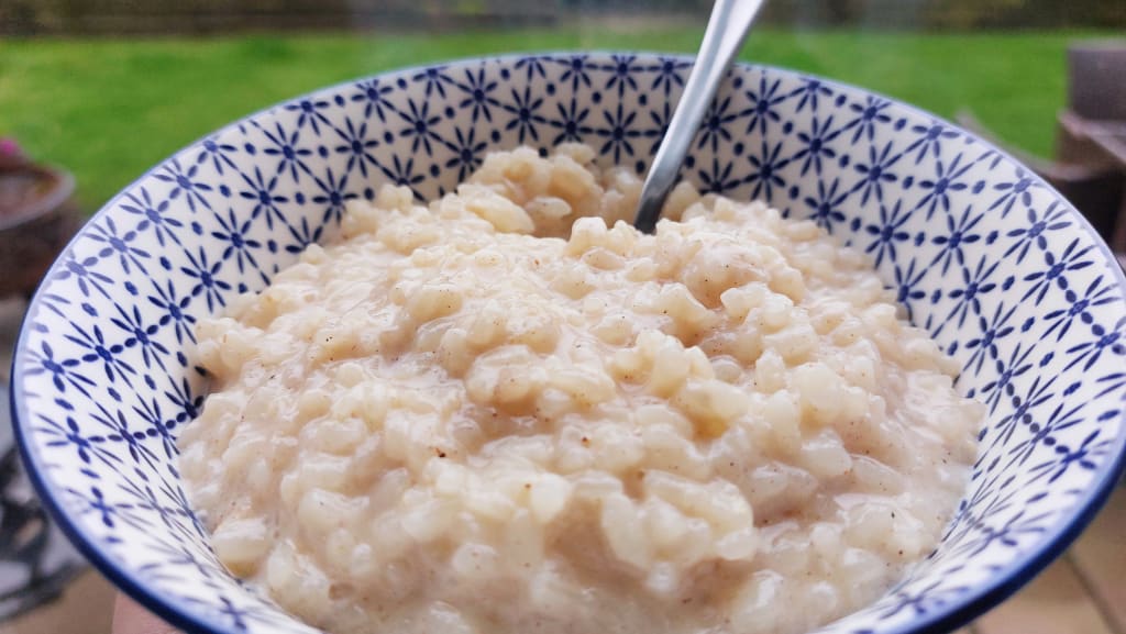 I do not know why, but I believe the calling was visceral. I remember sitting on the sofa, all numb and discombobulated, my body silently shrieking at me as my son bounced across the floor in delight at conversations with an animated robot called Claptrap, and deciding that what I had to have, immediately and without question, was a big bowl of rice pudding.