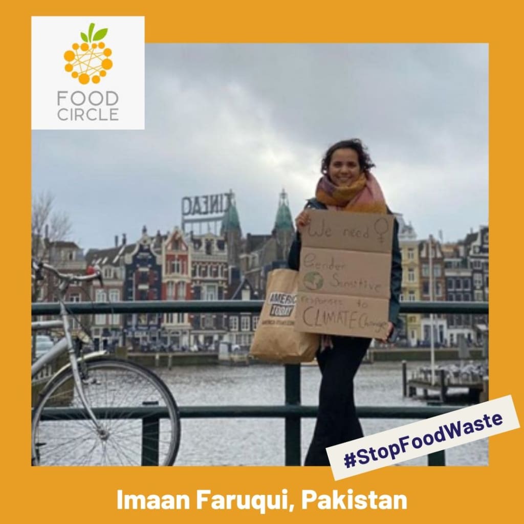 Sure, my name is Imaan Faruqui, I am Pakistani and I come from a city called Karachi. I've been living in Amsterdam since August. I am currently working as a project coordinator at Food Circle. Since I moved to Amsterdam I've been doing my Master's in environmental geography as well. I've always had a very keen interest in geography. Indeed, I used to teach geography in school for the last three years before I moved to Amsterdam.