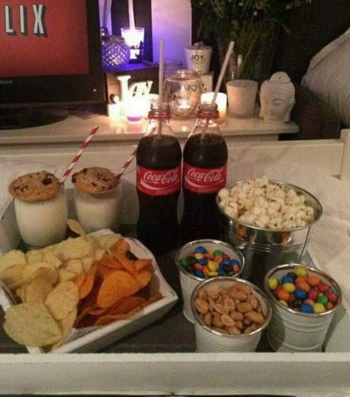 Writing these kinds of articles I really makes my mouth water. If it were up to me for the next Netflix and chill day I would order: McDonald's, Pizza, chips, dip, white chocolate Reese peanut butter cup thins, Pepsi, diet mountain dew, root beer, Diet coke, and other snacks.