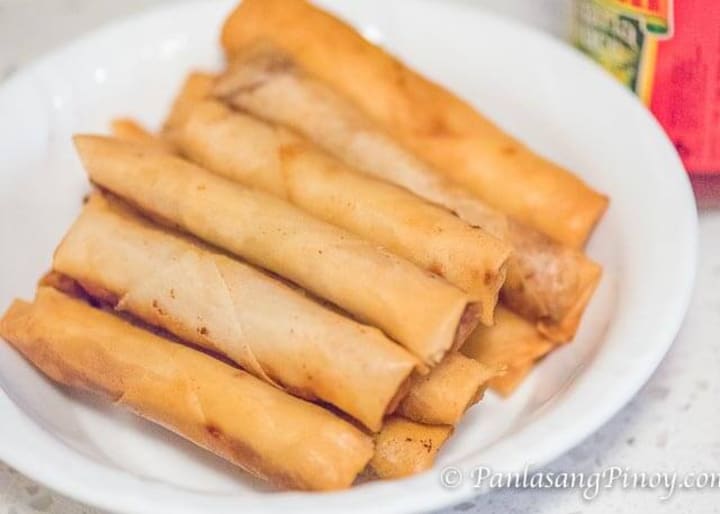 Remove the lumpia from the oil and drain on a wire rack or paper towels.