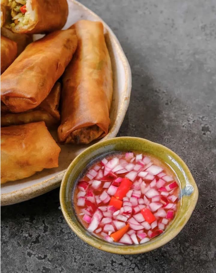 Serve with sweet chili dipping sauce and enjoy! Though, my girlfriend likes to do a homemade garlic vinegar sauce.