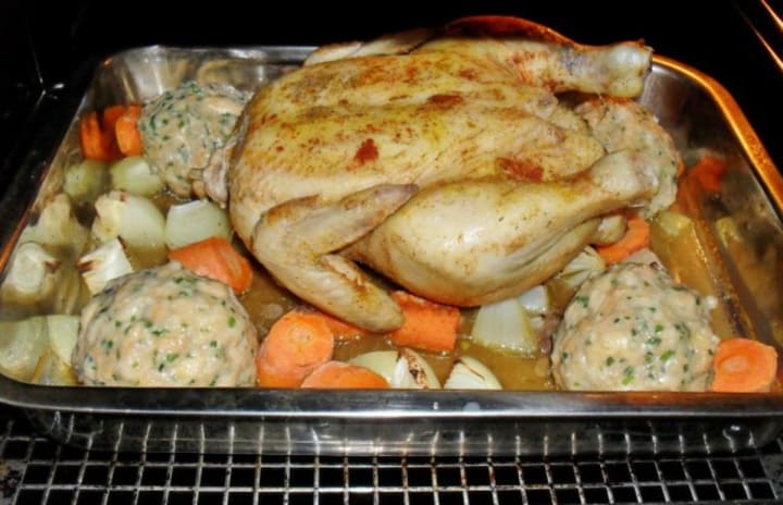 Weihnactsgans is a traditional dish that is prepared for Christmas. It is made with a roasted goose stuffed with onions, prunes, chestnuts, apples, and/or dates. The goose is seasoned with salt, pepper, thyme, and marjoram. It is served with dumplings, spaetzle, red cabbage, and gravy.