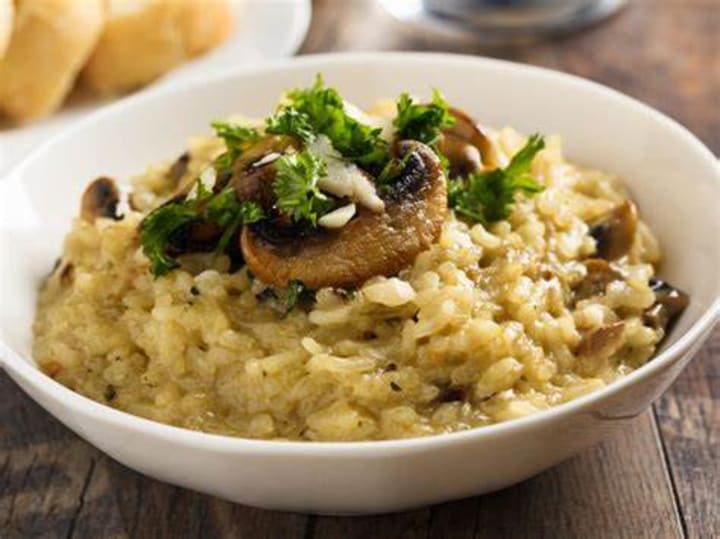 Risotto ai funghi porcini is a traditional Italian dish. It is prepared with fresh or dried porcini mushrooms, carnaroli or Arborio rice, olive oil, butter, shallots, white wine, meat stock, grated Parmigiano-Reggiano cheese, salt, and pepper. The onion is sauteed in butter and olive oil, then mushrooms, rice, and white wine. During the cooking process stock is added and at the end of cooking a dab of butter is added to the pan. Then grated cheese is mixed into the risotto.