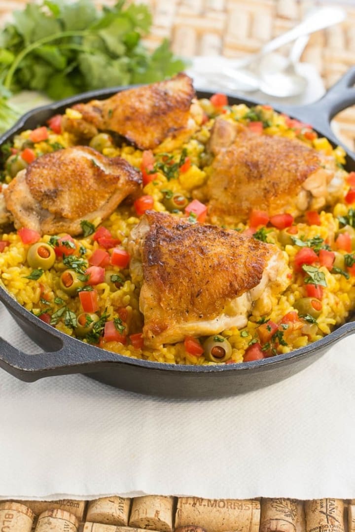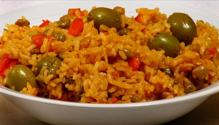 Arroz con pollo is a dish with Moorish influences. The dish is made with chicken, rice, stock, beer, sofrito, and spices like saffron, cumin, and coriander.