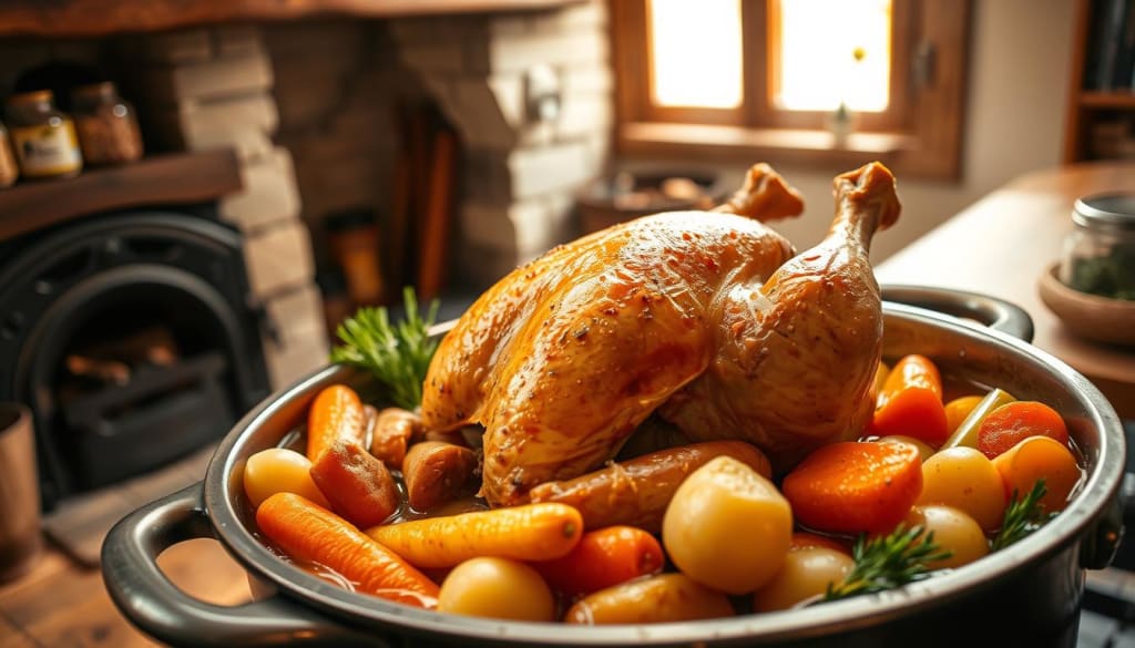 1- Prep the Magic: Place the whole chicken in a large stockpot and cover with water. Bring to a gentle boil over medium heat, skimming off any foam that rises to the surface.
