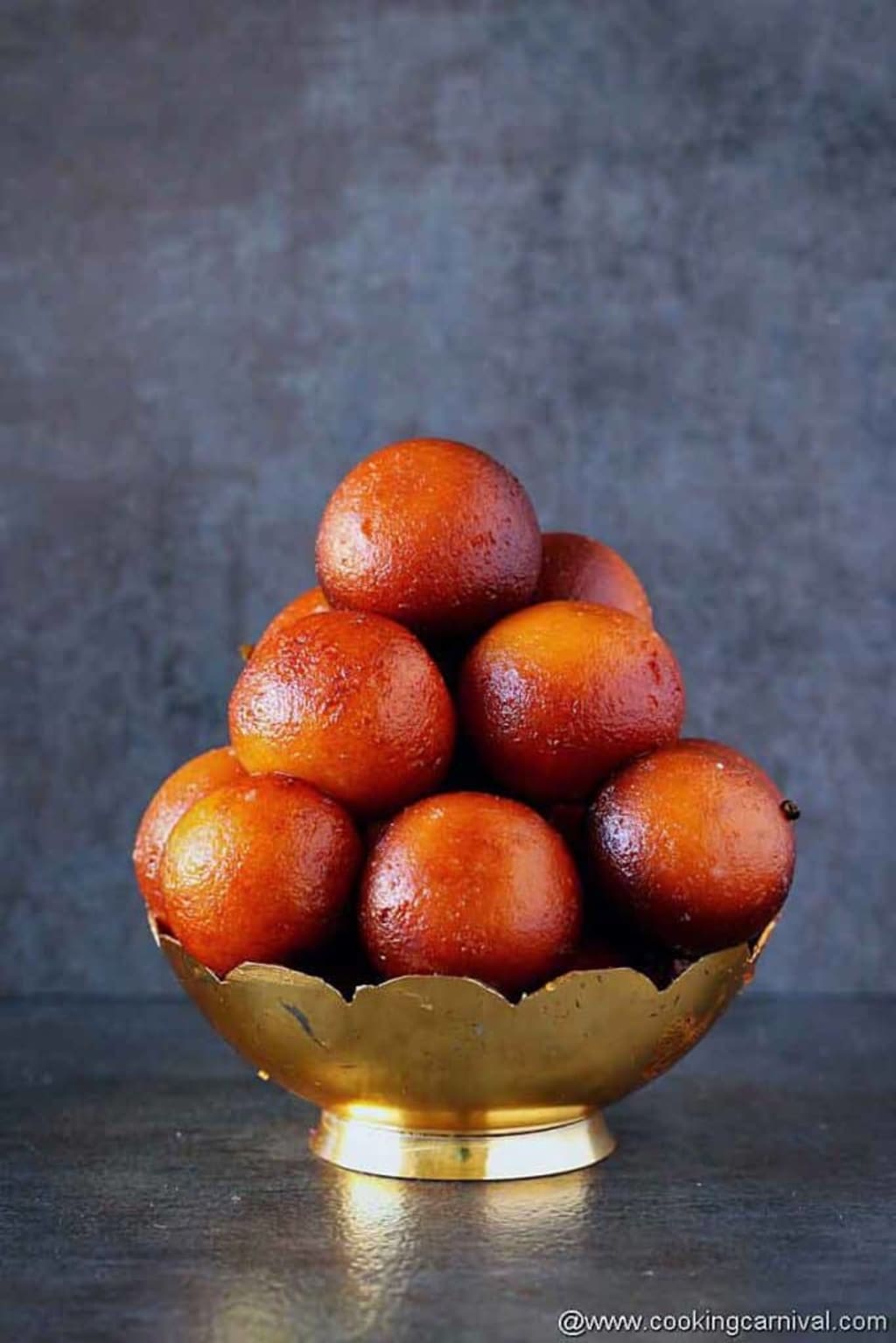 Kala Jamun: Instead of using all-purpose flour, you can use a combination of all-purpose flour and semolina (suji) to make the dough. This variation is known as Kala Jamun, which means "black jamun." The addition of semolina gives the dough a slightly grainy texture and a darker color. The rest of the recipe remains the same.