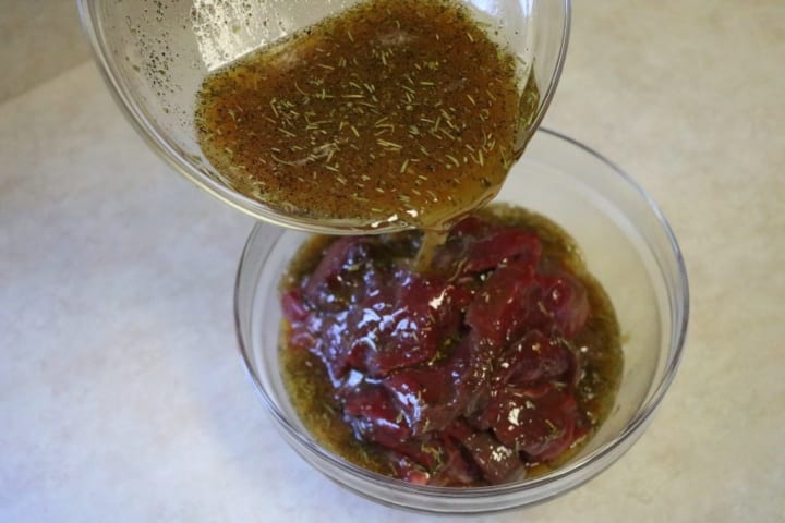 Pour the marinade over the venison. Mix it up well and refrigerate for at least eight hours. 30 minutes will work, but longer is better.