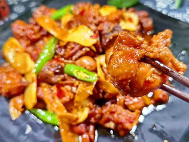 4. Finish & Serve: Increase the heat to high. Add the remaining young ginger slices and the bell pepper chunks. Stir-fry vigorously, allowing the sauce to reduce and thicken significantly. Cook until the peppers are tender-crisp and the ginger releases its vibrant aroma. The sauce should cling richly to the duck. Serve immediately, ideally with steamed rice to absorb the delicious, yang-warming gravy.