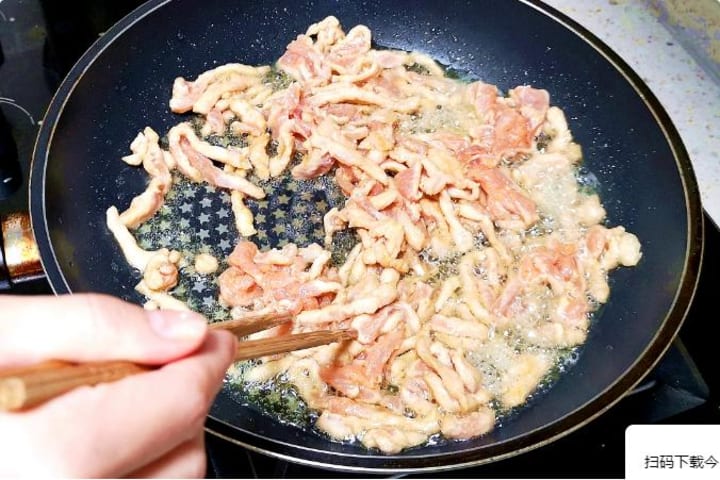 • Swift Separation – Add pork, immediately stir-fry with chopsticks/spatula until strips separate and turn opaque (~80% cooked). Overcooking = toughness!