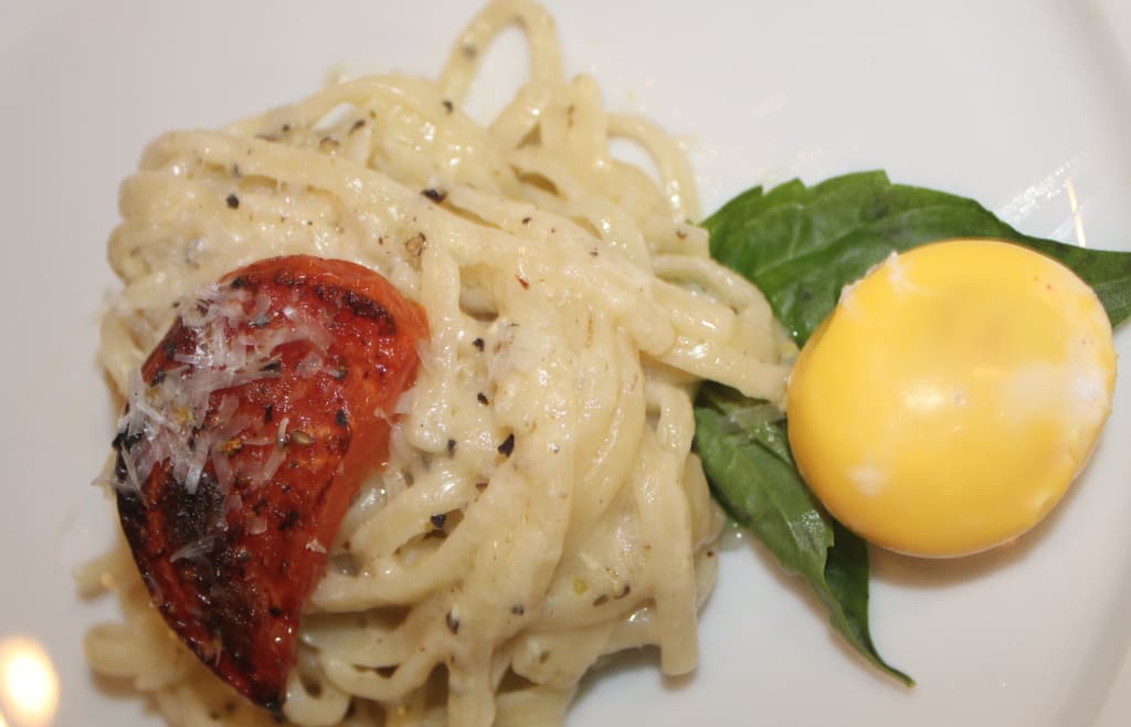 I also found that using balance as a tool is the way to make the most flavorful, succulent dishes that are worthy of a James Beard award. If you think about the best meals you've had, they're generally amazing because the flavors are so well balanced that you feel like nothing could improve the flavors; not adding more spice, more fat, more acid, or more sweetness. Therefore, the meal was well-balanced. Understanding the necessity for balance takes a meal from a normal home cooked meal to a whole other level, even without a recipe. Take the picture above, for example. I was given a set of ingredients I had to include as a task for a friend's food competition: Pasta, tomatoes, eggs, a fruit, and some kind of cheese. Using that seemingly strange grouping, I came up with this: a play on cacio e pepe, with a slice of roasted tomato and a poached egg yolk on the side. It was a linguine dish with a lemon, garlic, and peppery sauce, using the egg as a thickener and the tomato a dash of sweet. I chose lemon as the fruit, giving an acidic component, the garlic added a savory bite alongside parmegano reggiano, some herbed goat cheese for the necessary funk, the tomato for sweet, the egg for a creamy quality, and thus a well balanced dish that ended up winning the competition. Using the principles of balancing flavors allows for a dish that will both never be boring and also holds strength as a well composed, professional dish.