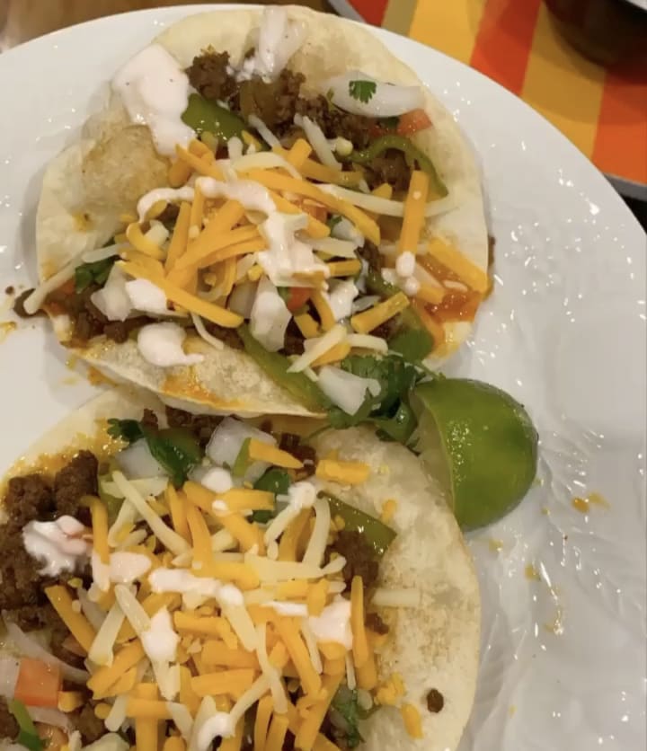 It didn’t take long to make and everything was fairly easy to cook. The preparation took longer than cooking. After we finished chopping the vegetables, we placed them in the meat that was browning, made salsa, and a creamy hot sauce. We placed the tortillas in the oven to harden with olive oil while we waited for the meat and vegetables to finish.