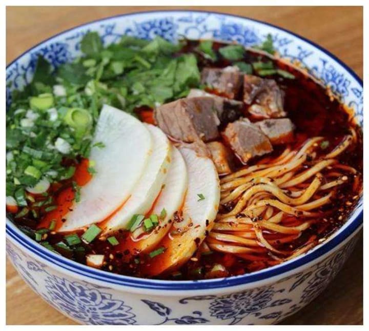 Lanzhou Beef Noodles, also known as Lanzhou Beef Noodles in Clear Soup, is one of the "Top Ten Noodles in China" and a local snack in Lanzhou, Gansu Province. It has the unique flavor of "the soup mirror is clear, the meat is rotten and fragrant, and the noodles are fine and fine" and "one clear, two white, three red, four green and five yellow", one clear (tang clear), two white (radish white), three red ( Chili oil red), Silu (cilantro, garlic seedlings green), Wuhuang (noodles yellow and bright), won the praise of domestic and even the world's customers. And it was rated as one of the three major Chinese fast food by the China Cuisine Association, and won the reputation of "China's first noodles".