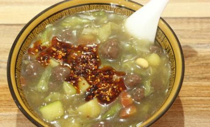 Meatball Paste Spicy Soup is a halal snack for Muslims in Xi'an. One of the most popular breakfasts for Xi'an people. Meatball Hu spicy soup can be said to be vegetable beef ball soup, or beef ball stew, but the difference from other places is that the soup needs to be thickened. The soup includes round beef balls, cut potatoes, lotus white, carrots, cauliflower, celery, etc. When eating, drizzle with oily spicy seeds and sesame oil, and hand-broken Tuo Tuo Mo. There is another elegant name for the meatball paste spicy soup called Bazhen soup, which is naturally exaggerated, but this also shows that paste spicy soup has a lot of "content". Unique taste.