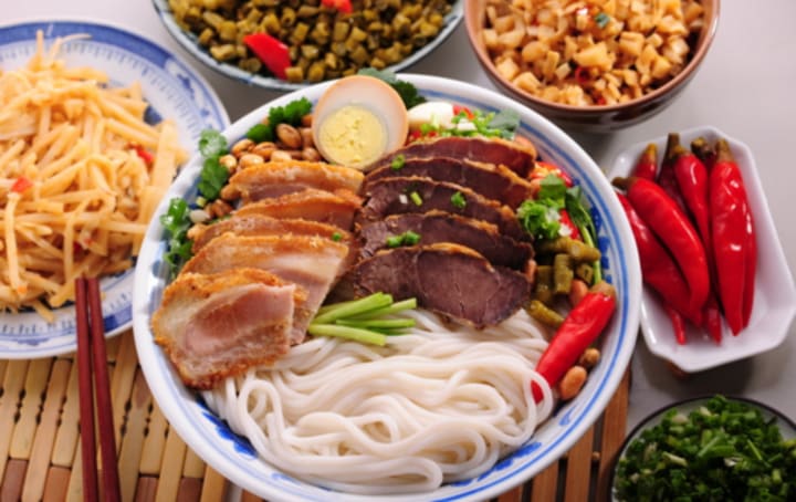Guilin Rice Noodles is a famous traditional snack with a long history in Guilin, Guangxi. Famous for its unique flavor. Its workmanship is exquisite. First, the best early indica rice is ground into pulp, bagged and filtered, and then pressed into round roots or flakes. The round ones are called rice noodles, and the flaky ones are called cut noodles, commonly known as rice noodles, which are characterized by whiteness, tenderness, softness, and refreshing taste. It is eaten in a variety of ways. The production of brine is the most important. The craftsmanship is different. It is roughly boiled with pig, beef bone, Luo Han Guo and various seasonings, with a strong fragrance. In 2017, it was selected into the list of "Top Ten Famous Snacks in China (Guangxi)".
