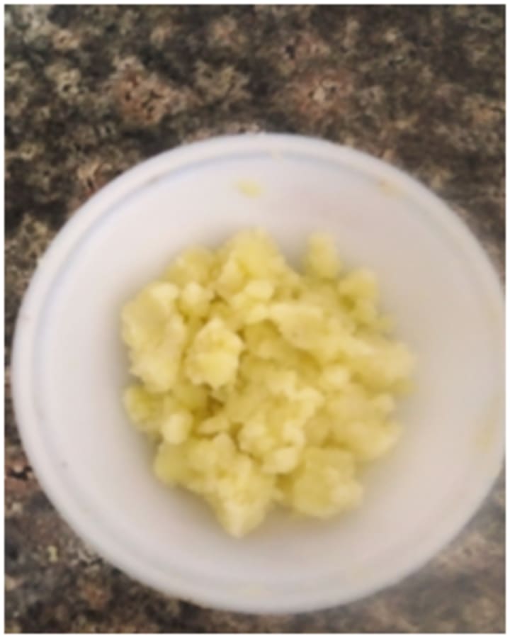 1) Take medium sized boiled potato. Peel and mash it into small chunks.