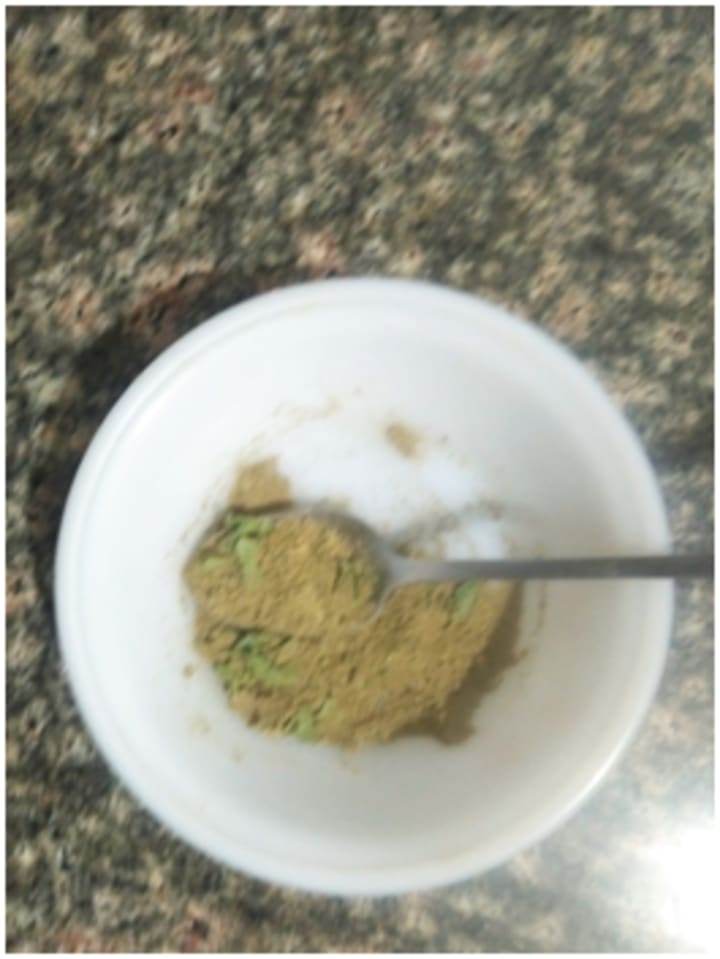 Take two teaspoons of Pani Puri Masala, add one teaspoon sugar/sugar powder and i love to add dry crushed Curry leaves & few fresh coriander leaves because dried mint leaves powder is one of main ingredients and already in it. But can also add fresh mint leaves.