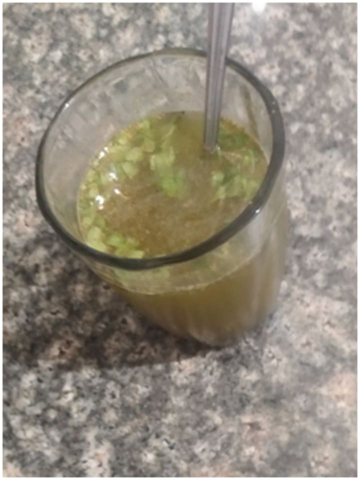4) Now mix the Masala & sugar in a glass and add about 50 ml of normal water and mix it well for the sugar and spices to dissolve, then add approx 150 ml of cold water. It will look like this below: