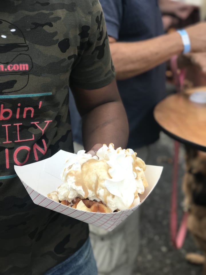 In case you haven't noticed I intend to end every festival the same way, and that's with a bomb ass waffle topped with ice cream. So of course this festival was no different, with that being said Baristas Coffee Express was descended upon with cruel intentions on the mind. I browsed the menu saw bananas foster waffle and I knew immediately... It... Was... Going... Downnnnn. The bananas foster consisted of a light waffle with cinnamon crunch, bananas, vanilla ice cream and rum sauce. Let me tell you this sauce was the boss, no Sweet Baby Rays. Everything came together flawlessly; it was synchronized and poppin like an HBCU dance team. I'm smiling just thinking about it.