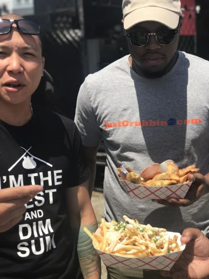Right in the middle of our food truck journey, we stopped at Dump N Roll—which is, in my opinion, the premier dumpling truck in the world. As the kids say, these dumplings bang. We talked with the owner Peter while tasting everything on the menu and it was basically a spiritual retreat. Each dumpling has its own combination of perfect flavors. My favorite of the bunch was the Crab Rangoon Wonton. Creamy and hearty and hella flavorful: so damn good I wish I could become crab rangoon. The mac and cheese spring roll was fantastic too and made me consider quitting my day job to become a full-time dumpling and spring roll taster. Needless to say, Dump N Roll gets six thumbs up out of two.