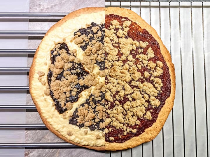 Valssky frgal is a traditional round sweet cake. It originated in the Moravian Wallachia region. Almost half of the cake consists of the crumble on the top which consists of sugar, cinnamon, and gingerbread crumbs, or it can be drizzled with butter.