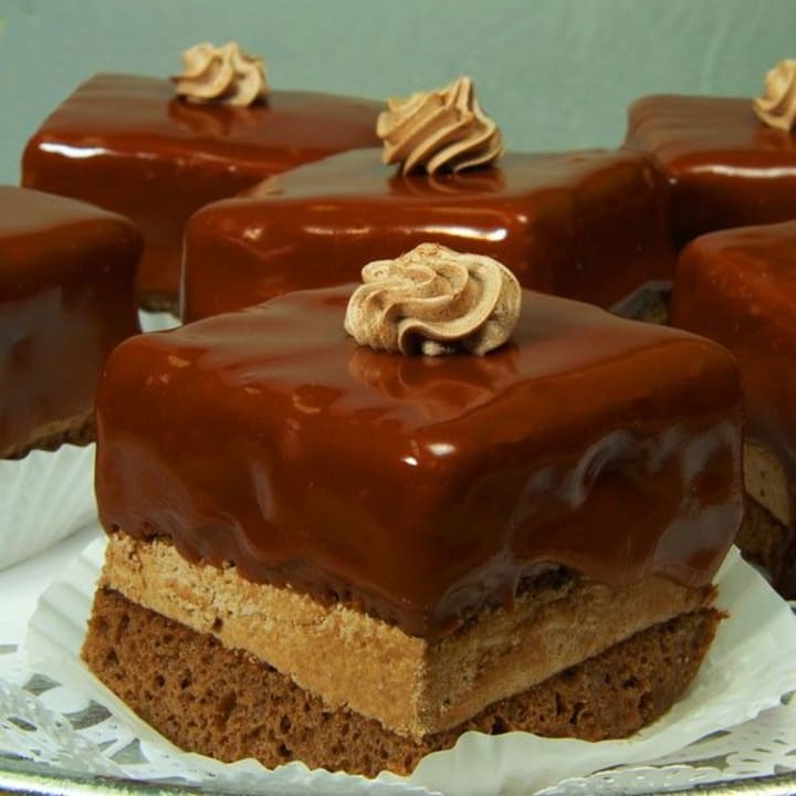 Amandine is a traditional chocolate cake. The cake can be filled with either chocolate or almond cream. It consists of four components sponge cake, syrup, filling, and glaze, The sponge cake is prepared with eggs, sugar, butter, vanilla, and cocoa. The syrup consists of water, sugar, and run. Finally, the glaze is made with chocolate and whipping cream.