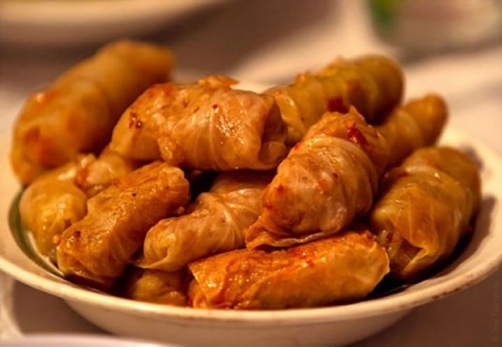 Sarmale is a delicious dish that consists of stuffed cabbage rolls. Cabbage leaves are stuffed with ground pork and rice and then cooked slowly for hours.