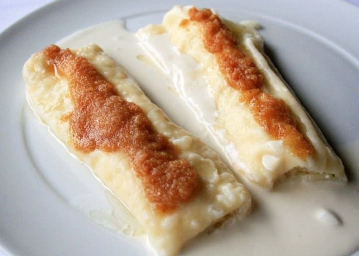 Zagorski strukli is a dish that originated in the northern regions of Hrvatsko Zagorje and Zagreb. It consists of dough that is rolled out flat and thin and filled with a mixture of cottage cheese with eggs, sour cream, and salt. After placing the filling on the dough it is rolled up lengthwise. The rolls can be baked until golden brown or boiled in a pot of boiling water.