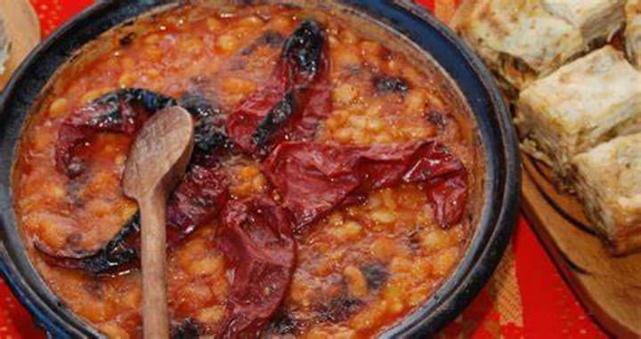 Tavche gravche is a delicious baked bean dish. The beans are cooked in a stone pot over an open fire. Onions and hot peppers can be added. The dish is served with sausages, bacon, ribs, kofta, or fish.