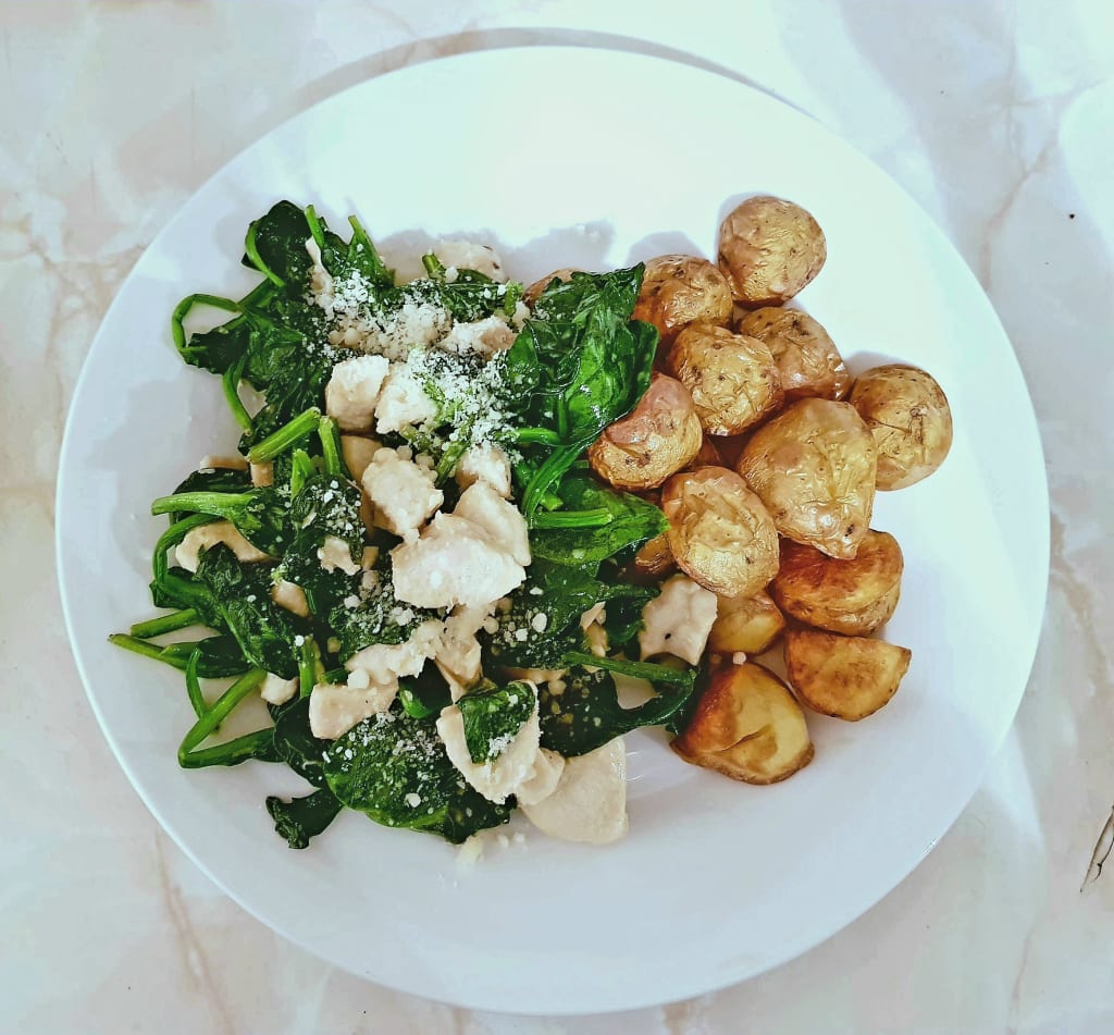Also don't forget to add those remaining juices from the pan to the Chicken and spinach! It makes it a lot more moist so there's definitely no need for any extra sauces which always contain SO much fat and calories.