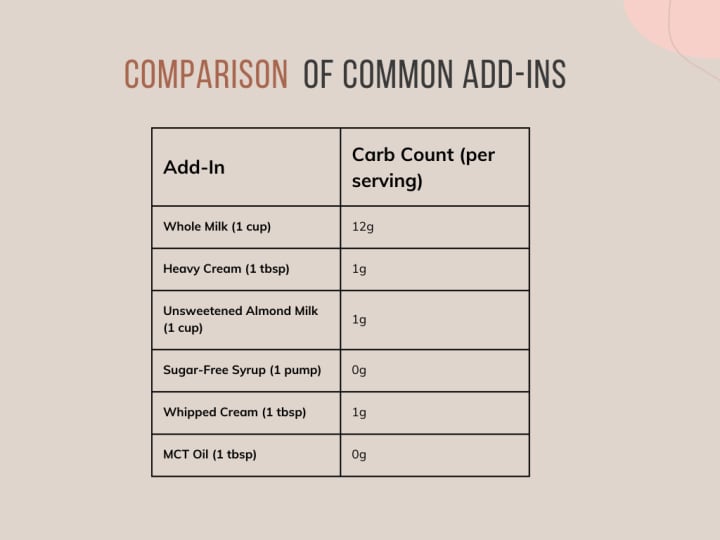 Comparison of common add-ins and their carb counts per serving: