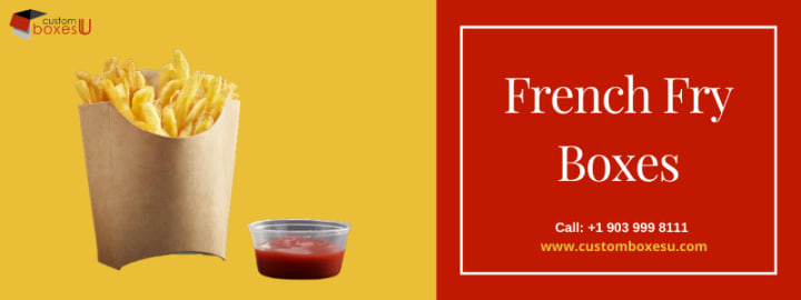 Show off your food snacks with unique custom printed French fries boxes by The CustomBoxesU