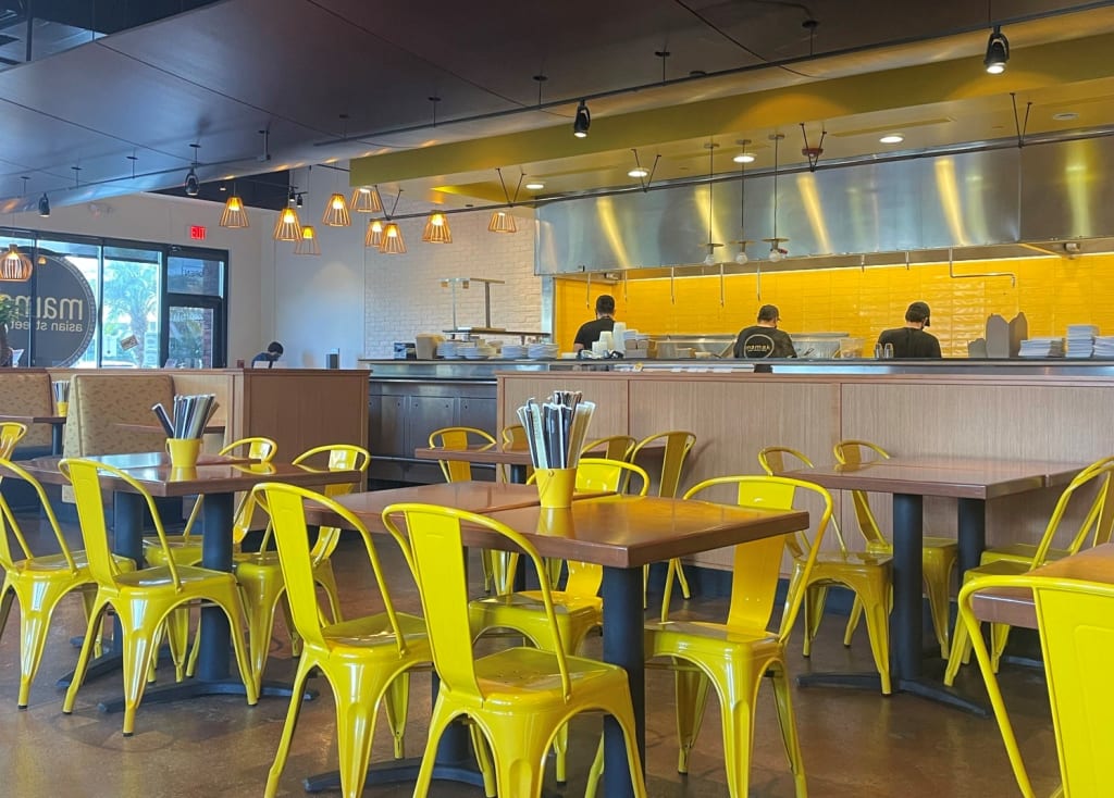 The decor is unbelievably simple, a yellow, black, and gray canvas combined with wood elements that say nothing about the food. It's plain and blah. Just a sleek, clean, and very well maintained environment. As soon as you enter, there is an ordering station. No overhead menu is available or food images to entice you, but printed menus are available for you to look at and choose right then and there. After placing and paying for your order, you are given a tabletop number for the table you choose. It wasn’t long before our orders were brought to the table randomly and not together.