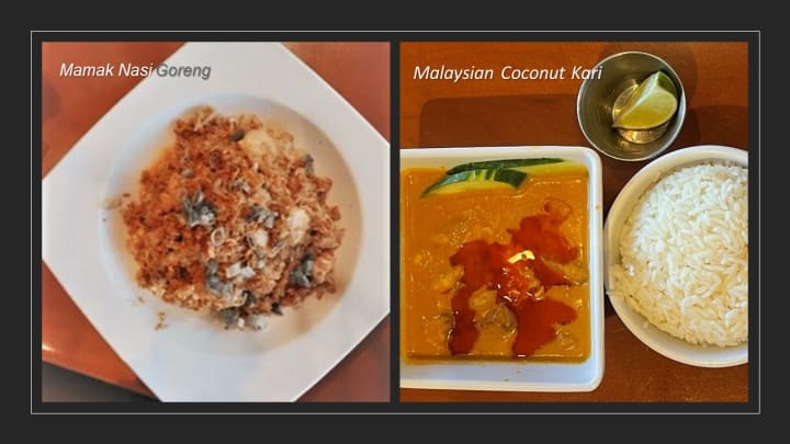 The menu consisted of tapas, grill options, wok options, specials, salads, noodle soups, and rice dishes. It is a bit complicated but each dish has an explanation of what it comprises. Our four-person party ordered Roti Canai, Coconut Shrimp, Satay Skewers, Malaysian Coconut Kari, and Mamak Nasi Goreng. Many of the items ordered were unfamiliar to us but we were willing to taste them.