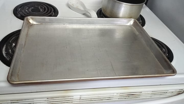 I chose this pan because of its deep sides, perfect for fitting parchment paper and the rack in it. Make sure the paper completely covers the bottom. That way there is no mess. Easy clean-up!