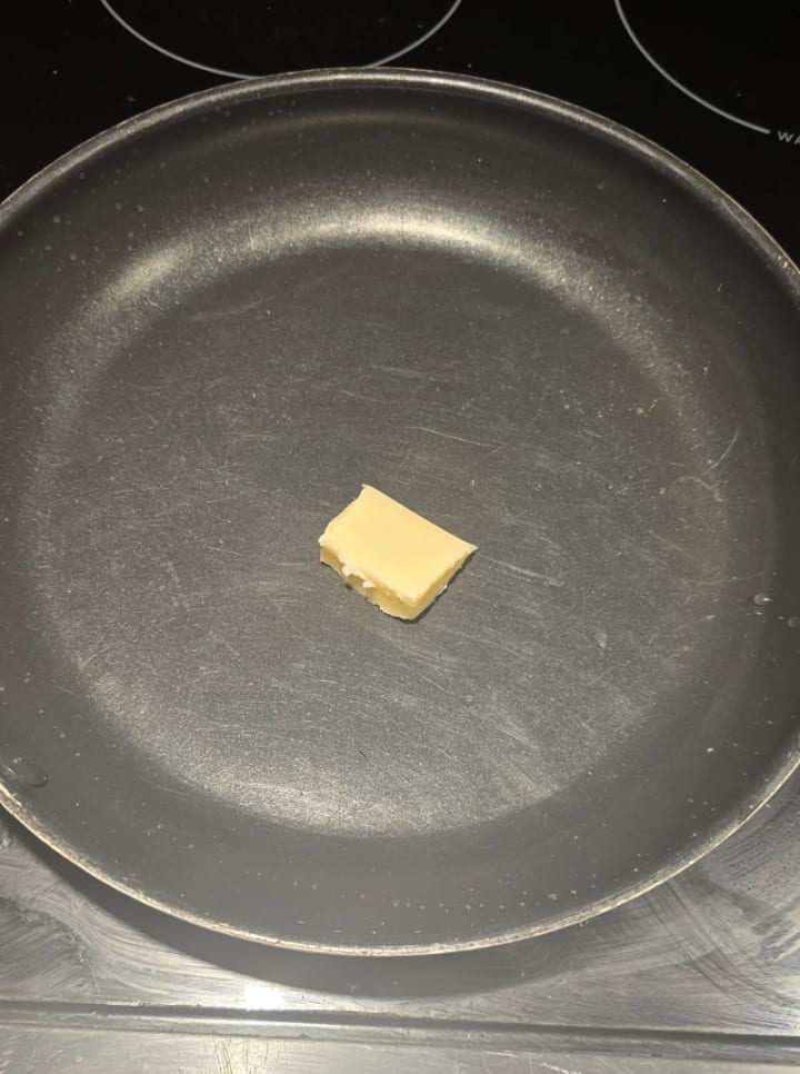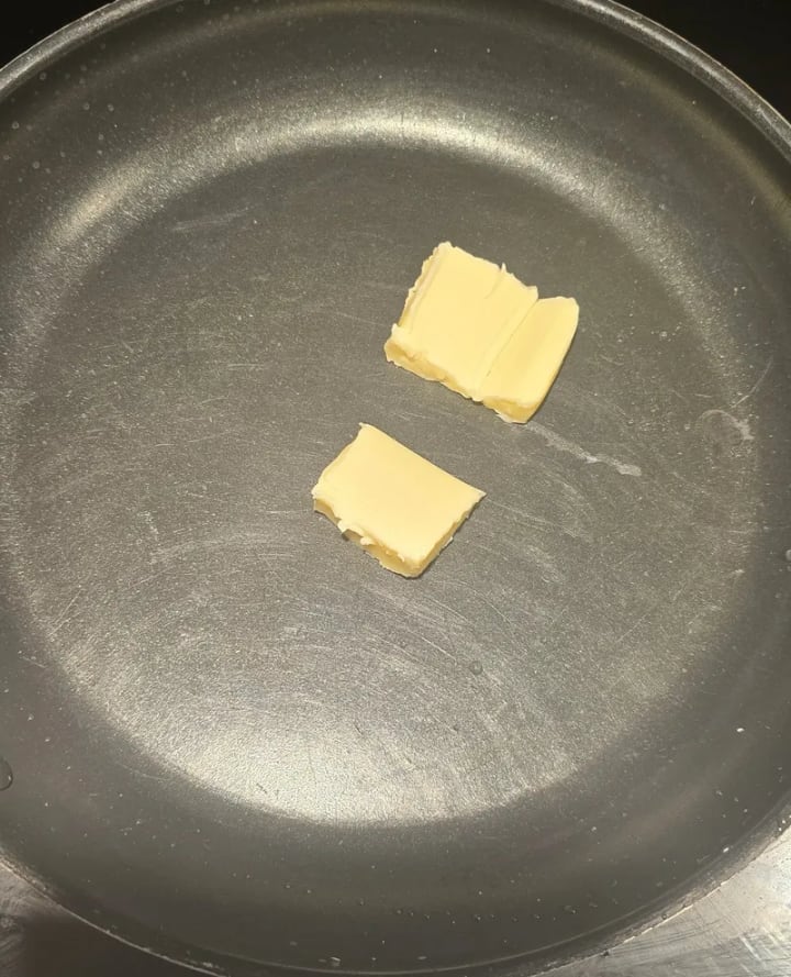 To get started with this mess, we need to melt some butter first. I do this even when the tortillas are dry but the time I introduce the eggs is just quicker.