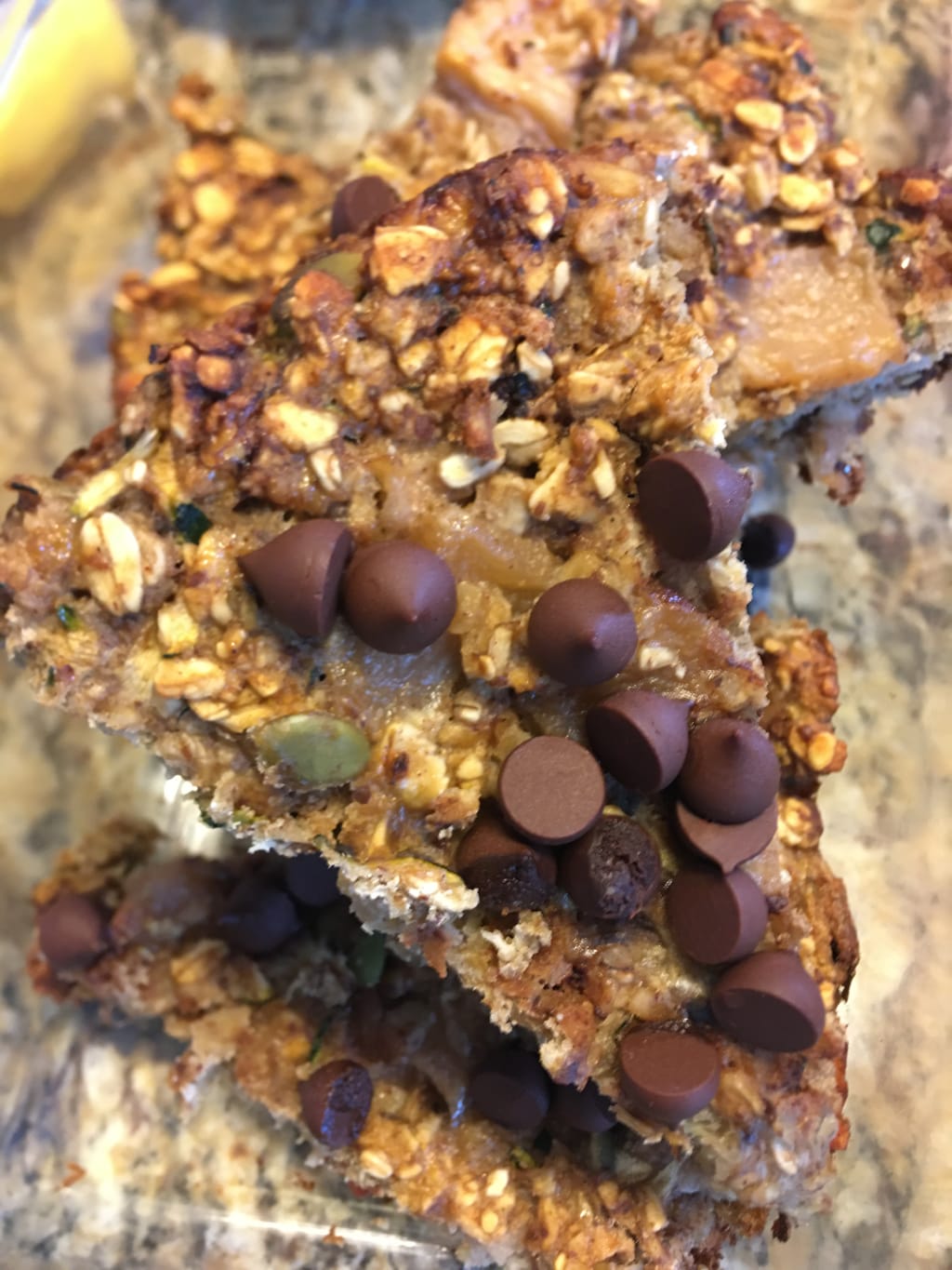 9. Sprinkle with some dairy free chocolate chips and bake for 35 minutes to 45 minutes or bake until the edges start to turn golden brown so check on your baked goods from 35 minutes and on