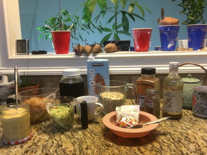 * I know I have the almond milk in the picture but I had to put it in the bracket because I completely forgot to put it in my recipe... yes... I have had a long day and it was close to midnight... so please forgive me for the confusion.. nonetheless I do strongly believe from my baking experience if you would like softer and more moist oatmeal you can put 1/4 cup of almond milk or any other non dairy milk and it still will be superb!