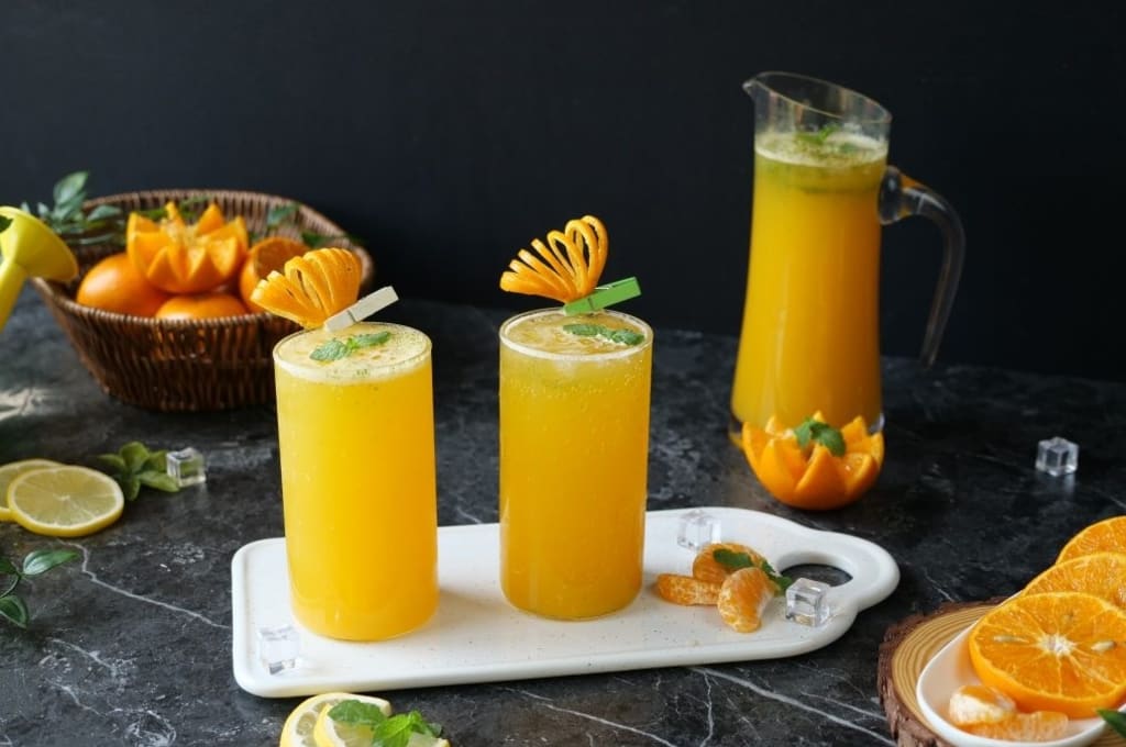 Here's a simple recipe for Orange Mint Refresher: