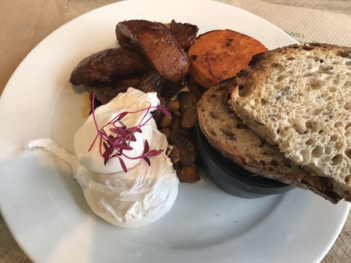 My boyfriend Liviu and I called in for lunch on a Wednesday. We shared some really great avocado, salmon, and eggs on toast. Everyone else there was in yoga or dance gear. They even have a special discount lunch for dance students.