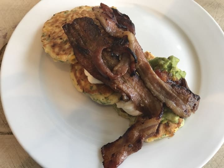 Corn fritters with bacon from Bach – Hoxton, London. They tasted better than they looked. Photo: Gareth Johnson