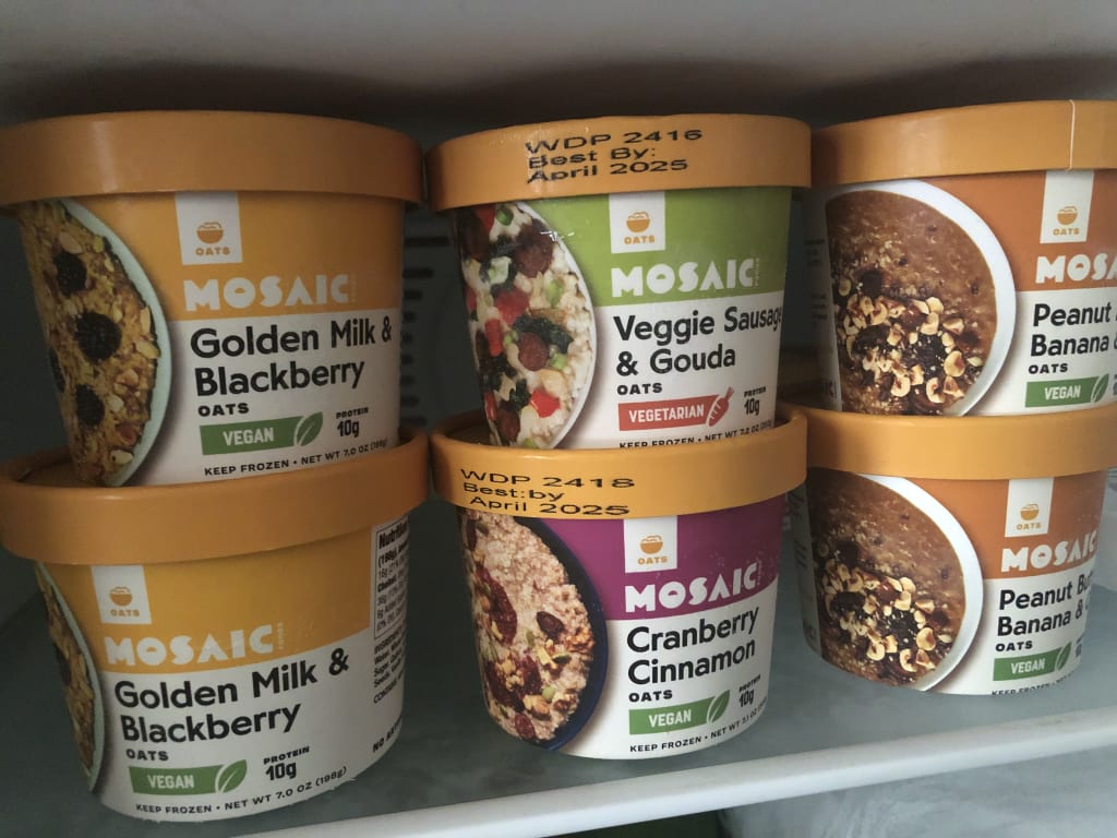 I was searching for frozen meal kits online when I stumbled on Mosaic Foods. Their line-up includes pizzas, veggies bowls, soups and--to my delight--oat bowls loaded with fruit, nuts, quinoa and other goodies.