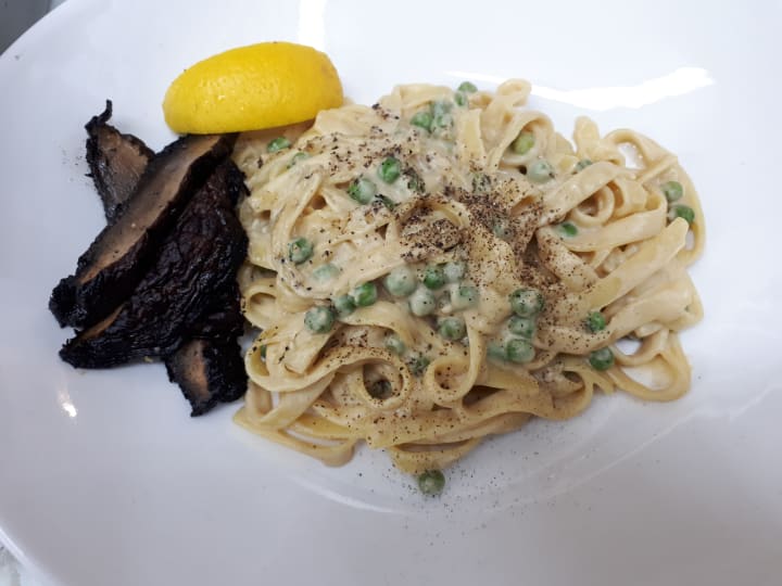 Fettuccine Alfredo w/ Grilled Portobella Mushroom