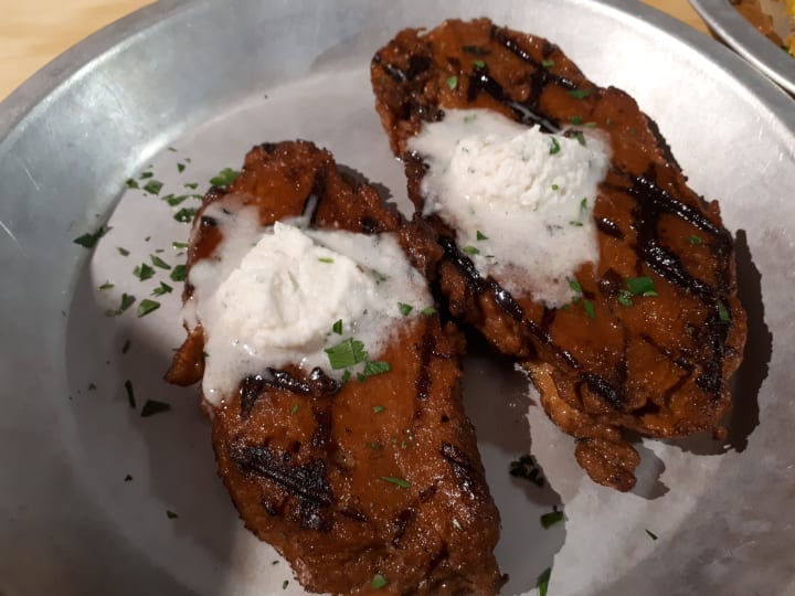 Seitan steak with garlic butter.