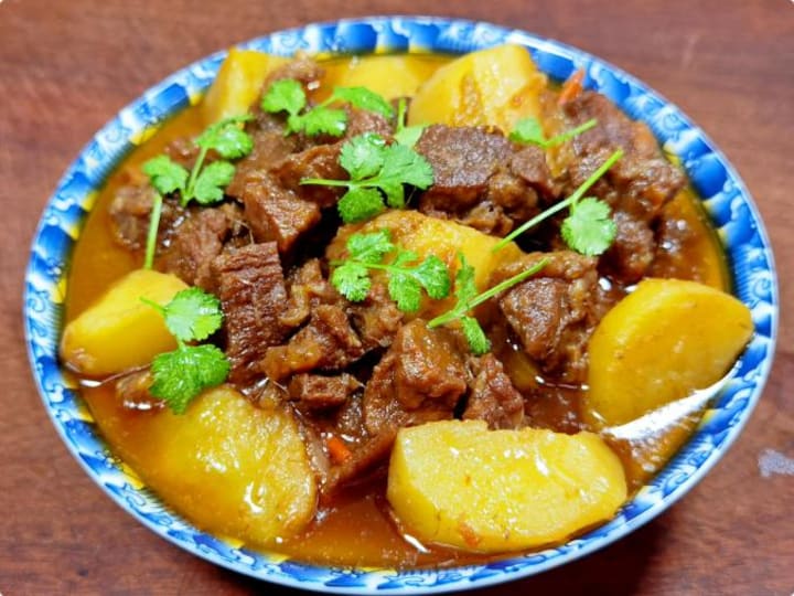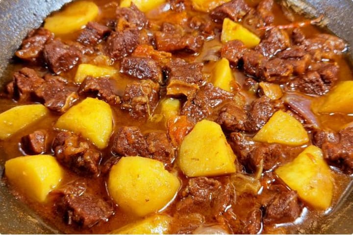 5. Finish: Reduce the sauce slightly, garnish with scallions, and serve. The potatoes absorb the rich beef broth, becoming melt-in-your-mouth tender, while the beef stays succulent. The sauce is perfect over rice!