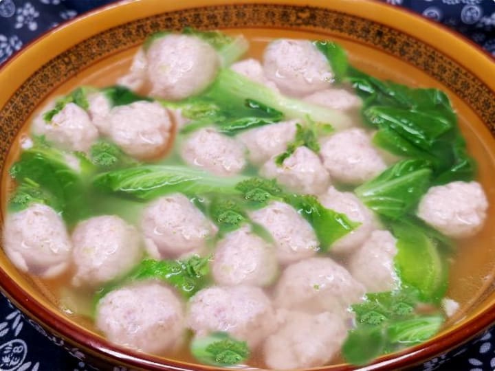 5. Season: Finish with salt, white pepper, and a drizzle of sesame oil. The clear broth, tender fish balls, and crisp greens make a comforting bowl.